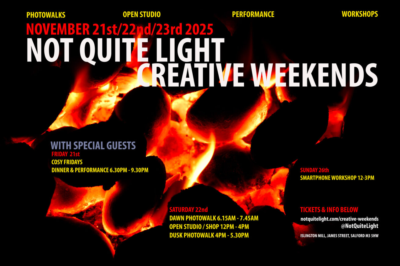 There’s a lot going on at the Not Quite Light HQ this Autumn, so I’ve decided to use this page as a place to collate everything as it becomes available.  EVENTS Once a month I’m hosting Creative Weekends at the studio, offering mixture of events, photowalks and workshops. On the Friday night, from the October event, there will be a dinner option too, which should be delightful… Visit this link to see the weekend dates, and for more information. Photowalks […]