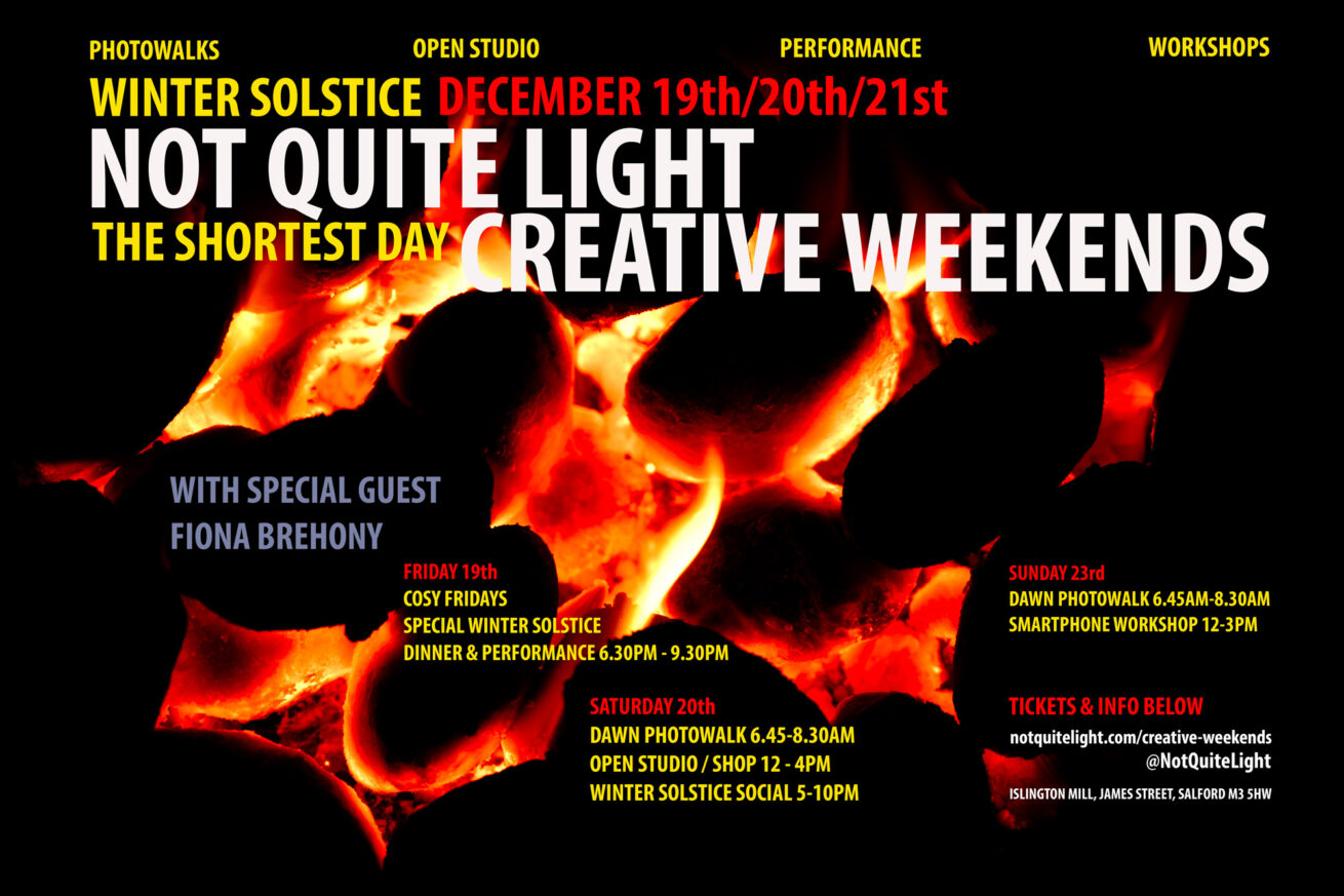 WELCOME TO DECEMBER’S CREATIVE WEEKEND CELEBRATING THE WINTER SOLSTICE… FRIDAY 19TH – SUNDAY 21ST DECEMBER 2025 NQL HQ ISLINGTON MILL JAMES STREET, SALFORD M3 5HW FRIDAY 24th OCTOBER AN EVENING OF FINE FOOD, GOOD CONVERSATION, PERFORMANCE AND MUSIC. Join Not Quite Light for another Cosy Friday, with an intimate supper and live performance… This month we welcome sound and performance artist Fiona Brehony & musician and composer Simon Knighton who will present an atmposheric sound piece. SUPPER 6.30pm -7.30pm The […]