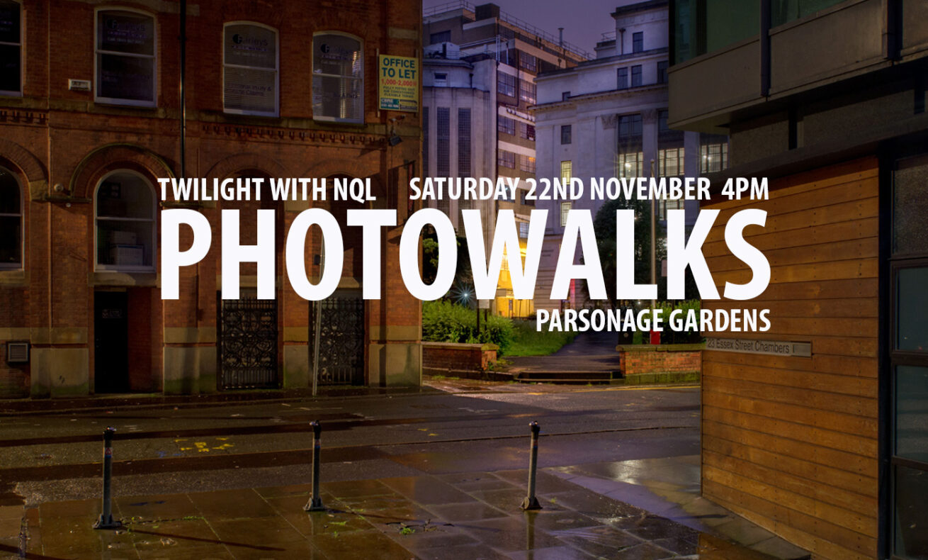 Join me at dusk for a magical walk from Parsonage Gardens, and then down towards Sacred Trinity Church at Blackfriars with views of the Irwell on the way. I’ll be on hand to offer tips and inspiration for photographs. The walk is suitable for any level, and you can bring any kind of recording device – smartphone, dslr or film cameras, or even no device at all if you simply want to stroll and absorb the sights and sounds arround you. The walk is about giving ourselves permission to slow down and closely observe the world around us. At the end of the walk there is the option to visit a local pub and talk through the things we’ve seen, and maybe learn some basic post processing techniques using a free app on your phone.